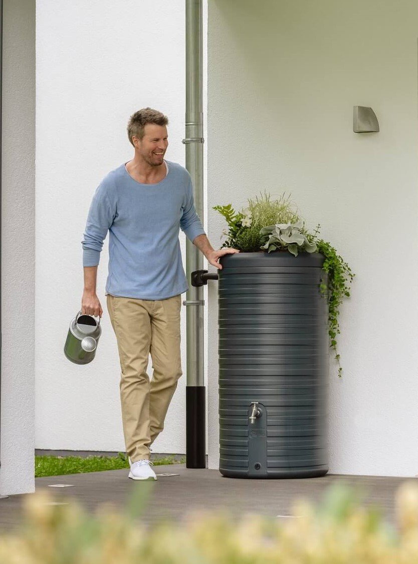 Der designstarke Regenwasserbehälter in nordischem Stil - inklusive Pflanzschale.