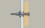 Der Dübel wird mit der Montagezange fischer HM-Z 1 in der Vorsteckmontage gesetzt. Mit der Zange wird der Dübel im Hohlraum gegen den Plattenbaustoff gezogen. Die Spreizarme klappen dabei auf und pressen sich an die Plattenrückseite. Alternativ ist auch die Montage mit einem Schraubendreher oder einem Akku-Schrauber möglich.