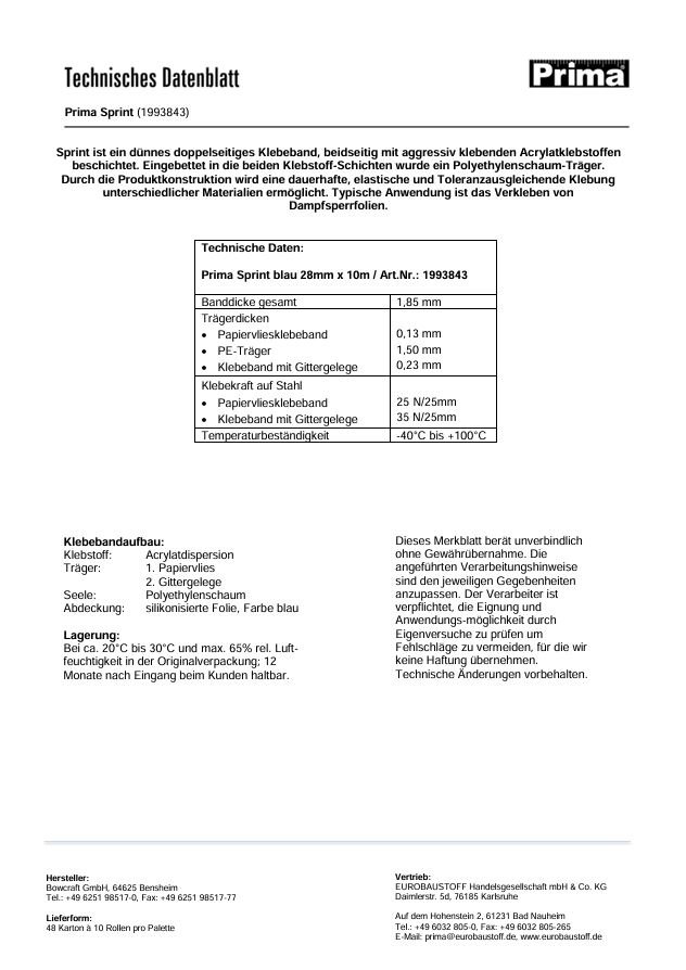 Shop » Detailansicht Prima SPRINT - blau - 28 mm x 10 m