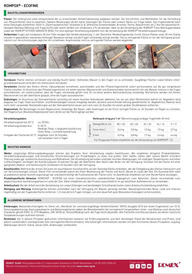 Shop » Detailansicht ROMPOX® - ECOFINE - Der starke, nachhaltige Pflasterfugenmörtel - verschiedene Farben