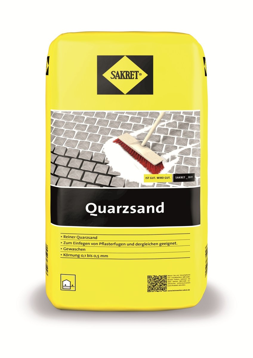Kommt überall rein: Der SAKRET Quarzsand ist ein ganz Feiner – mit festgelegten, kleinen Sandkörner. Seine Einsatzgebiete sind vielfältig. Du kannst mit ihm verschiedene Baustoffe verbessern, z. B. Kleber, Mörtel oder Gießharze. Vor allem aber kannst Du mit ihm Pflaster- und Plattenfugen ganz einfach und schnell füllen. Dafür ist er direkt bereit zur Verarbeitung.