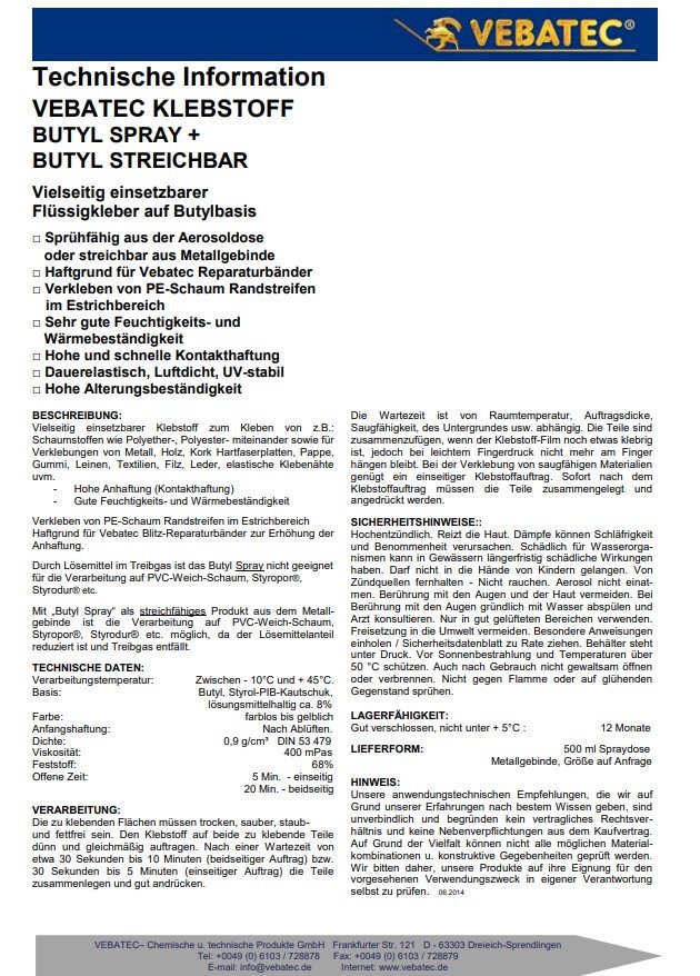Vebatec BUTYL SPRAY - Klebstoff + Haftgrund