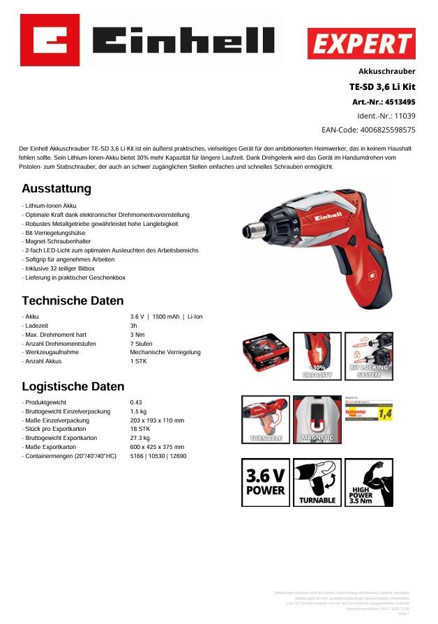 Der Einhell Akkuschrauber TE-SD 3,6 Li Kit ist ein äußerst praktisches, vielseitiges Gerät für den ambitionierten Heimwerker, das in keinem Haushalt fehlen sollte.