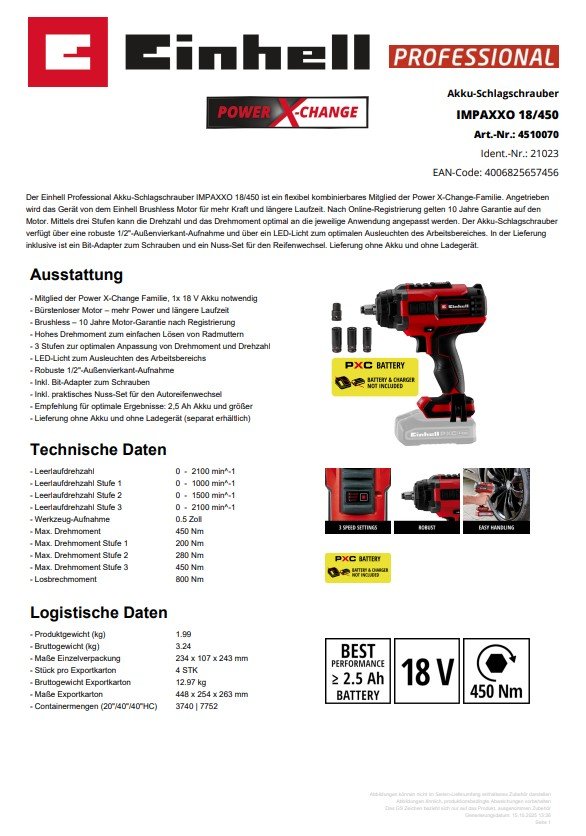 Kategorie: Maschinen/ Werkzeuge/ Schutzbekleidung/ Arbeitskleidung » Maschinen » EINHELL » Schrauber/ Bohrschrauber/ Schlagschrauber/ Schlagbohrschrauber